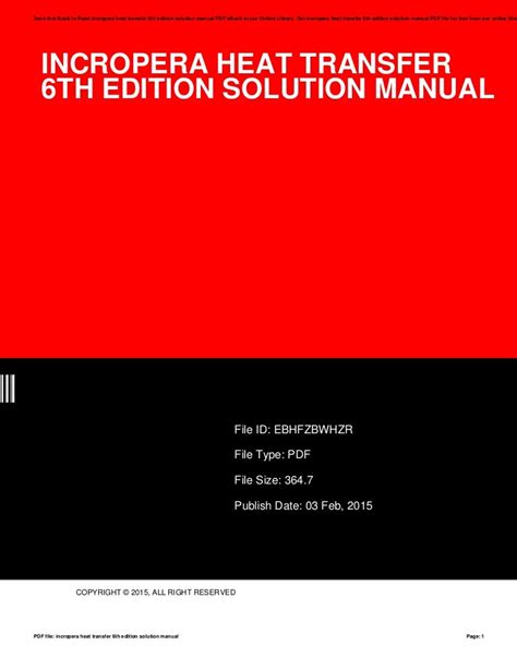 Read Online Incropera Heat Transfer 6th Edition Solution Manual Doc online is a convenient and frugal way to read Incropera Heat Transfer 6th Edition Solution Manual you love right from the comfort of your own home. Yes, there sites where you can get Doc "for free" but the ones listed below are clean from viruses and completely legal to use.